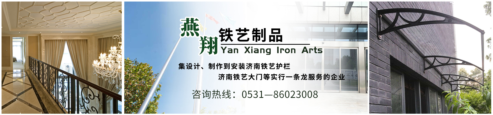 濟(jì)南燕翔鐵藝制品有限公司是一家集設(shè)計(jì)、制作到安裝濟(jì)南鐵藝護(hù)欄,濟(jì)南鐵藝大門(mén)等實(shí)行一條龍服務(wù)的企業(yè),具有高標(biāo)準(zhǔn)、高科技的管理模式,并有著多年的設(shè)計(jì)、生產(chǎn)、制作經(jīng)驗(yàn),工藝精湛。企業(yè)生產(chǎn)安裝各種不銹鋼系列產(chǎn)品:鐵藝樓梯、鐵藝護(hù)欄、鐵藝大門(mén)、鐵藝護(hù)窗、鋼梁雨篷、地下車(chē)庫(kù)雨篷、各式汽車(chē)自行車(chē)雨篷、鋼結(jié)構(gòu)工程、玻璃門(mén)、感應(yīng)門(mén)、幕墻等工程。制作各類(lèi)不銹鋼異形、不銹鋼扶手、護(hù)欄、不銹鋼防盜門(mén)、...